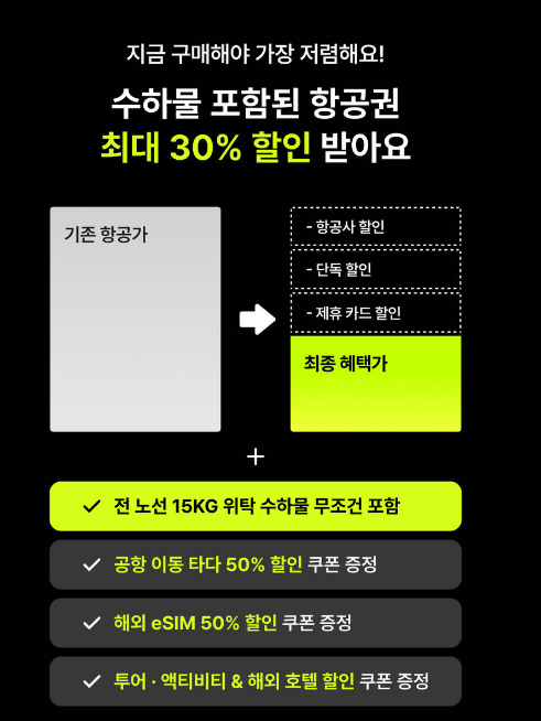 하지만 타이밍만 잘 맞춘다면 항공권 특가나 땡처리 항공권을 통해 훨씬 저렴하게 구할 수 있습니다.