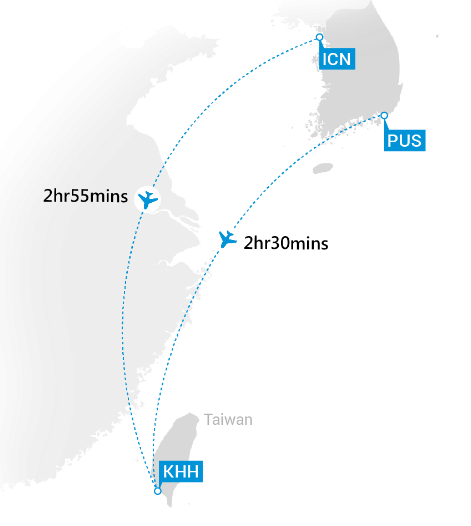 가오슝 국제공항(KHH)까지 한국에서 출발하는 항공편은 대한항공, 타이거에어, 제주항공, 진에어 등이 운영 중입니다.
