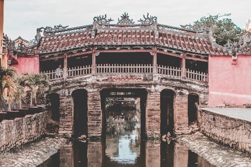 호이안의 랜드마크 중 하나인 일본 다리는 16세기 일본 상인들이 지은 다리입니다.
