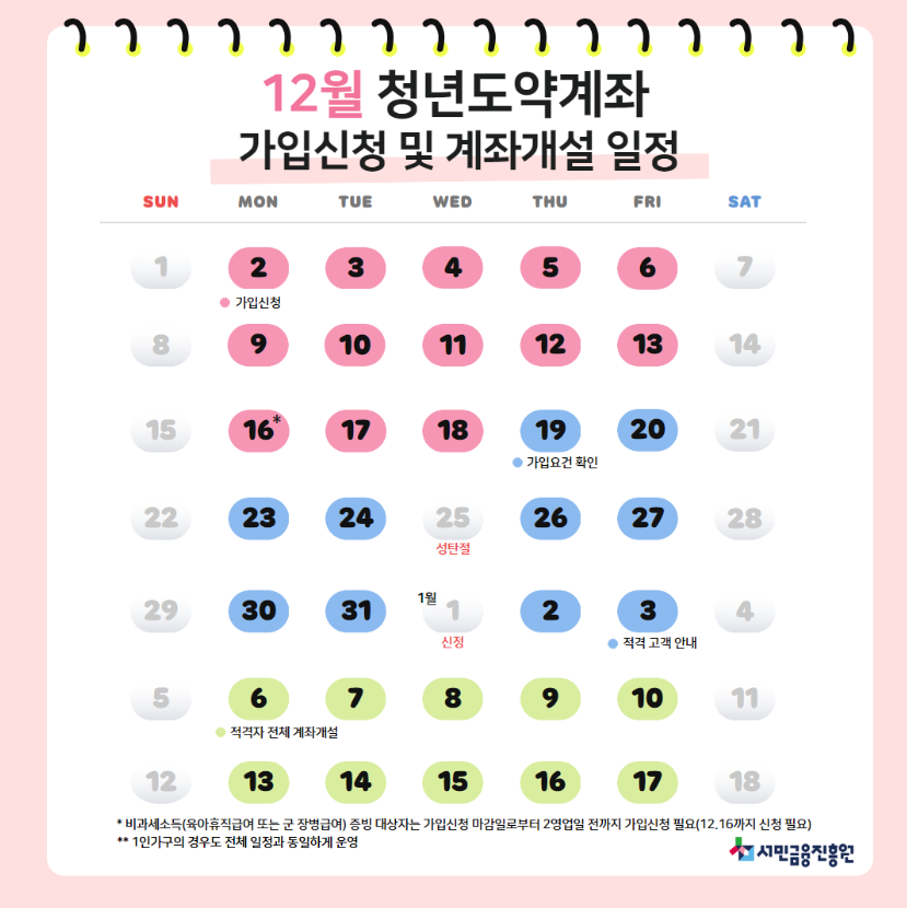 - 기존 신청자 중 계좌 미개설 청년도 재신청 가능.