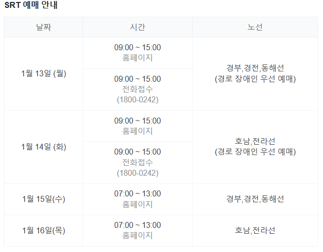 2025년 설날 기준 코레일(KTX)과 SRT 예매 일정: